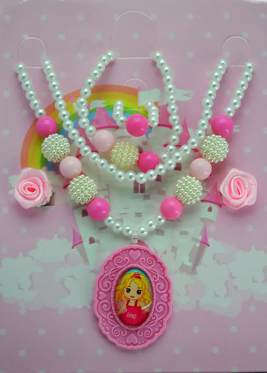Набор украшений для девочек розового цвета.