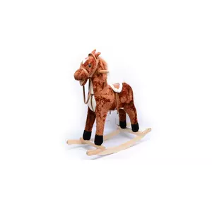 Игрушка покрыта мягким, приятным на ощупь материалом. Сверху на спине установлено седло, которое стабилизирует ребенка во время игры.