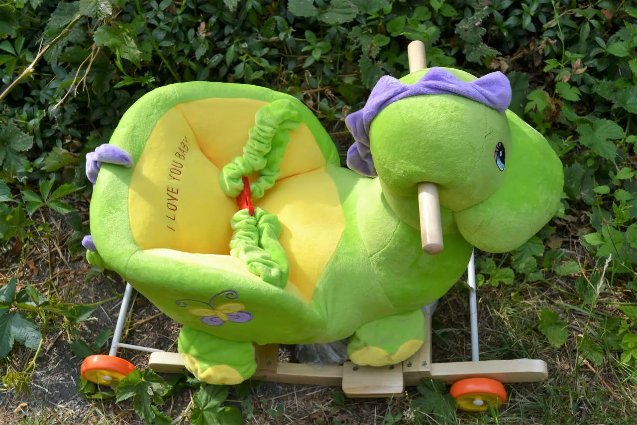 На голове игрушки есть удобные ручки, за которые может держаться ребенок. Для предотвращения выпадения малыша, на качалке есть ремни безопасности.