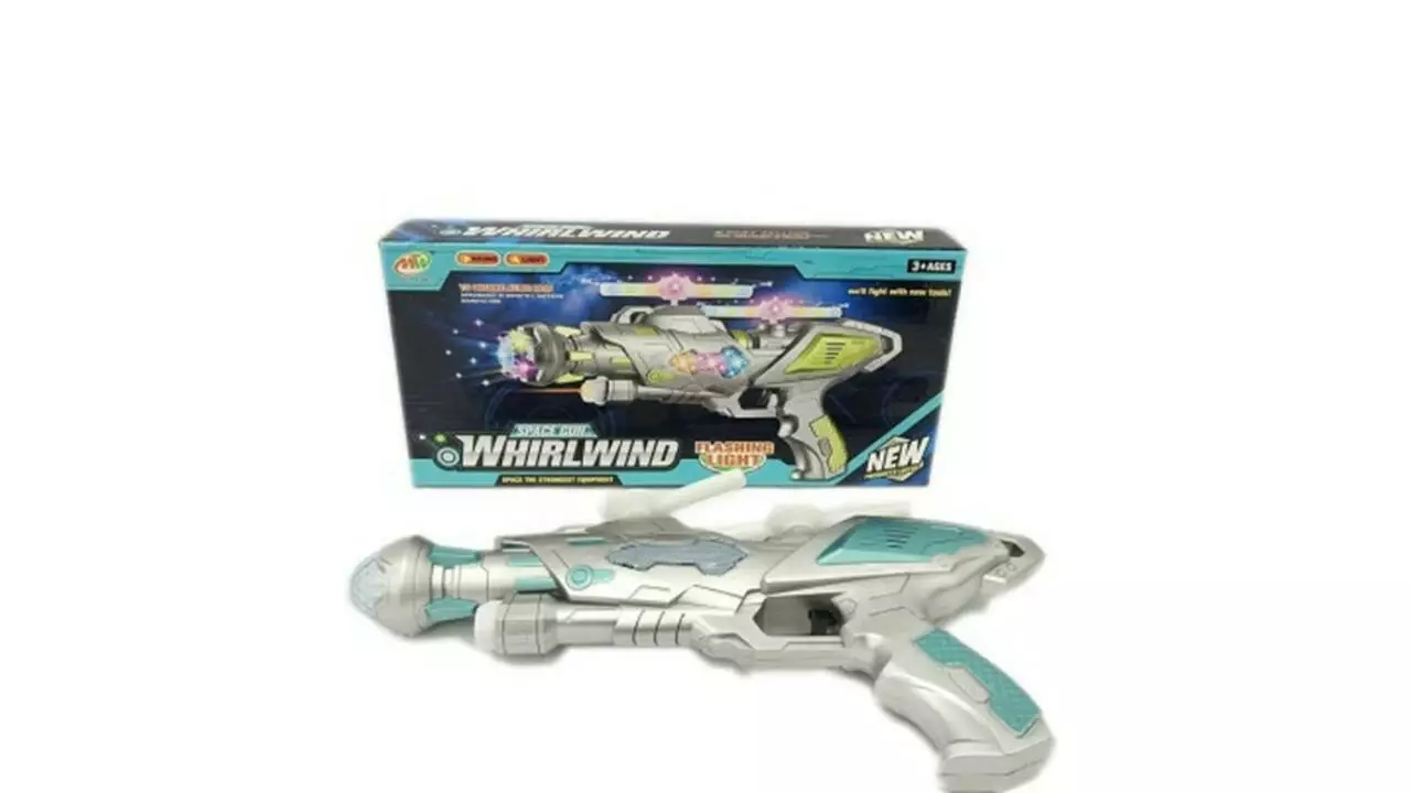 Лазерный пистолет Whirlwind - это пластиковый пистолет, который стреляет инфракрасным лучом. Пистолет сопровождается мишенями, в которые игроки могут стрелять.