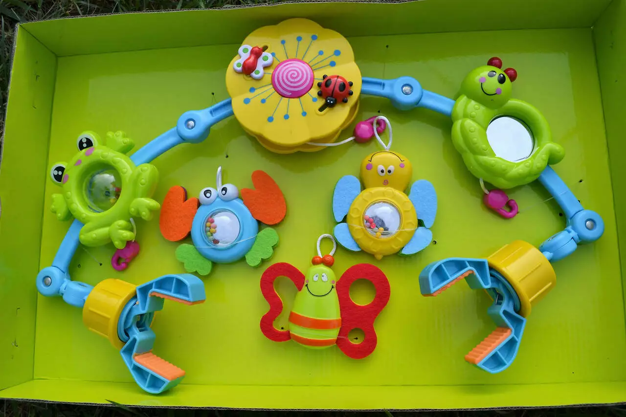 Погремушки на подвижной основе, которые надежно можно закрепить на коляске, кроватке или детском сиденье.