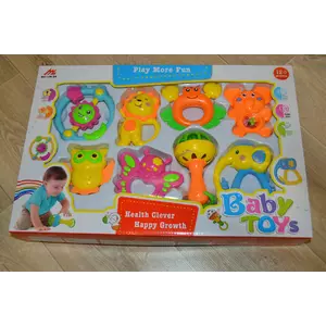Отличный набор погремушек для малышей. При встряхивании погремушки издают звуки, благодаря чему развивается слуховое восприятие.