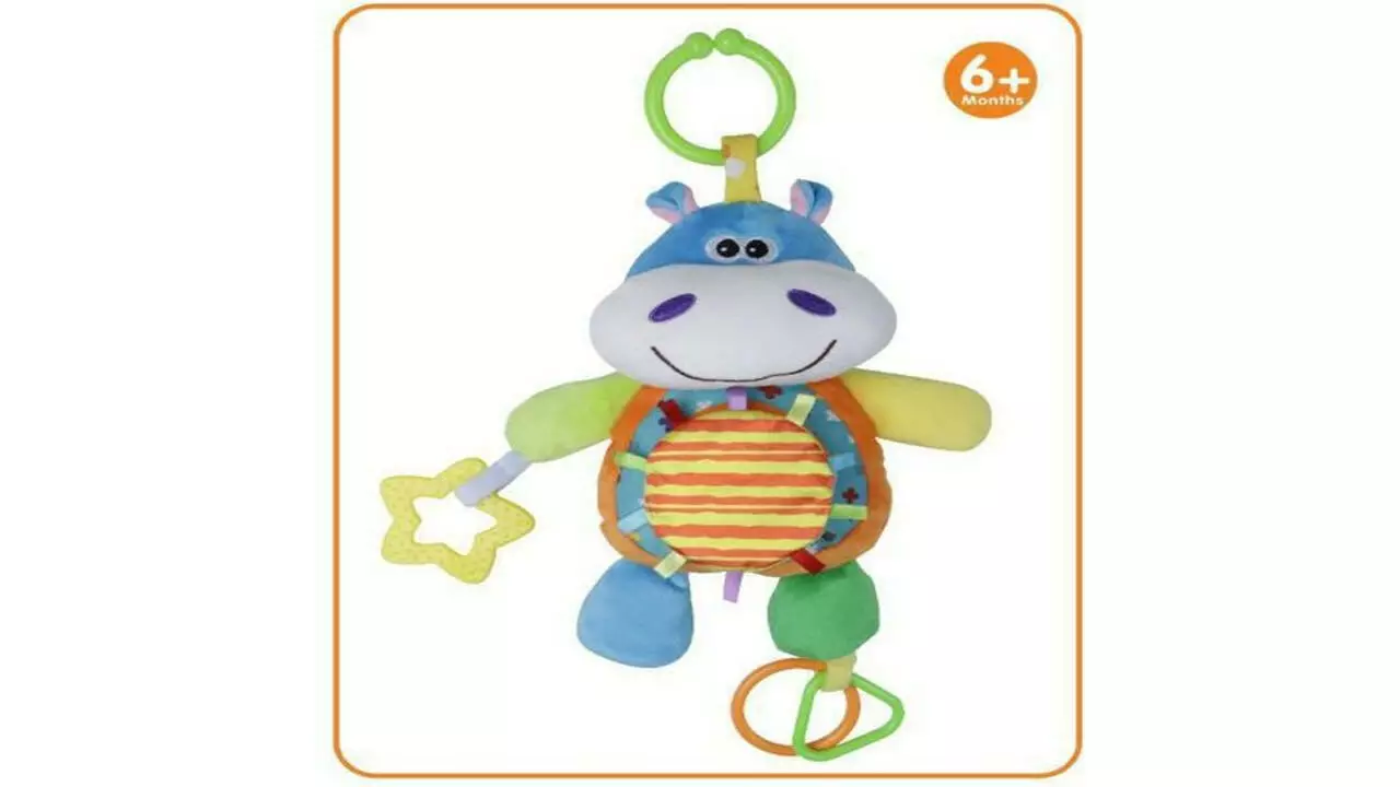 Яркая подвеска-погремушка в виде бегемотика, которая привлекает внимание вашего малыша.