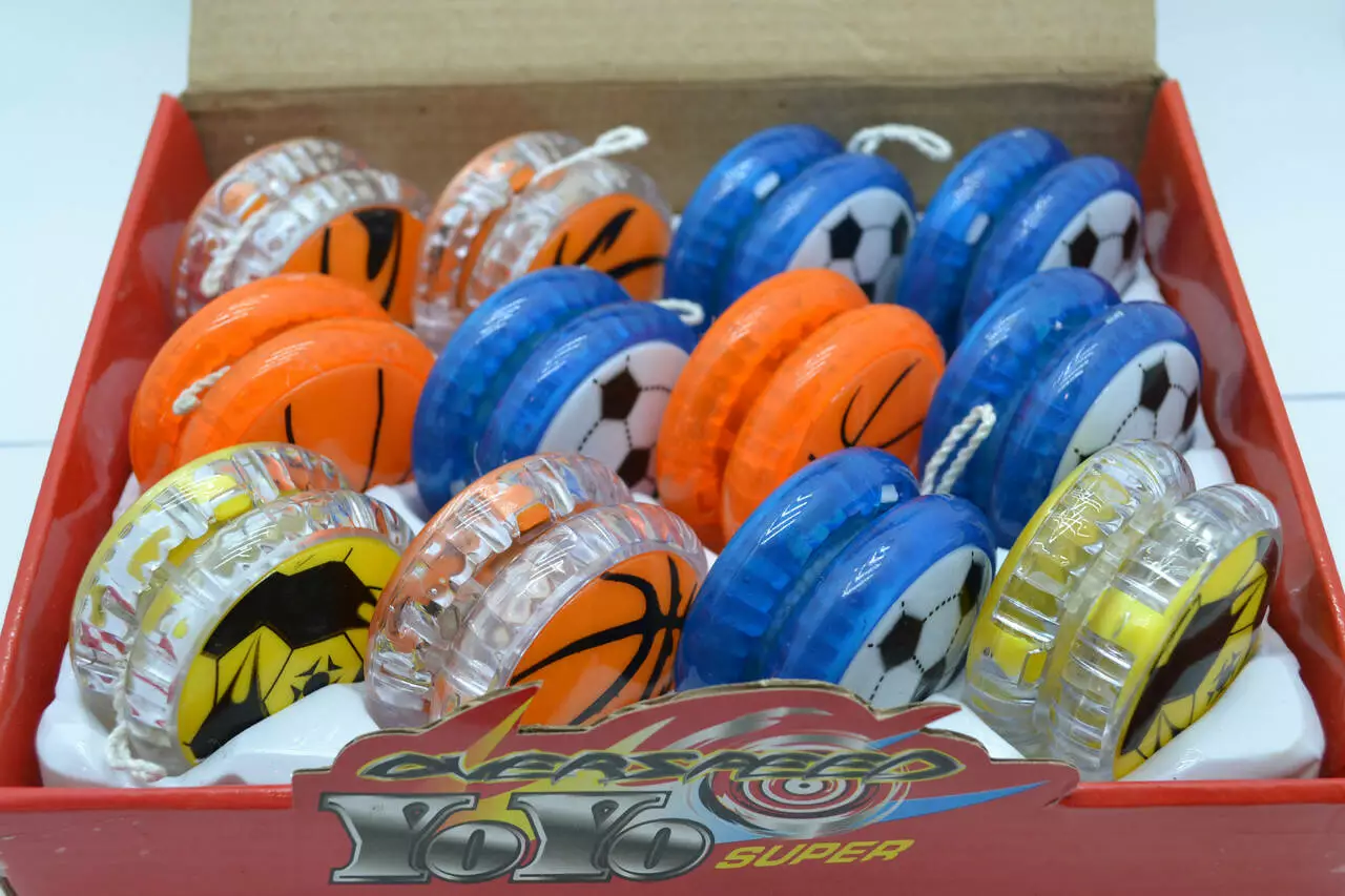 Яркий йo-йo в виде мячиков супер прост в использовании для детей всех возрастов. При вращении включается свет.